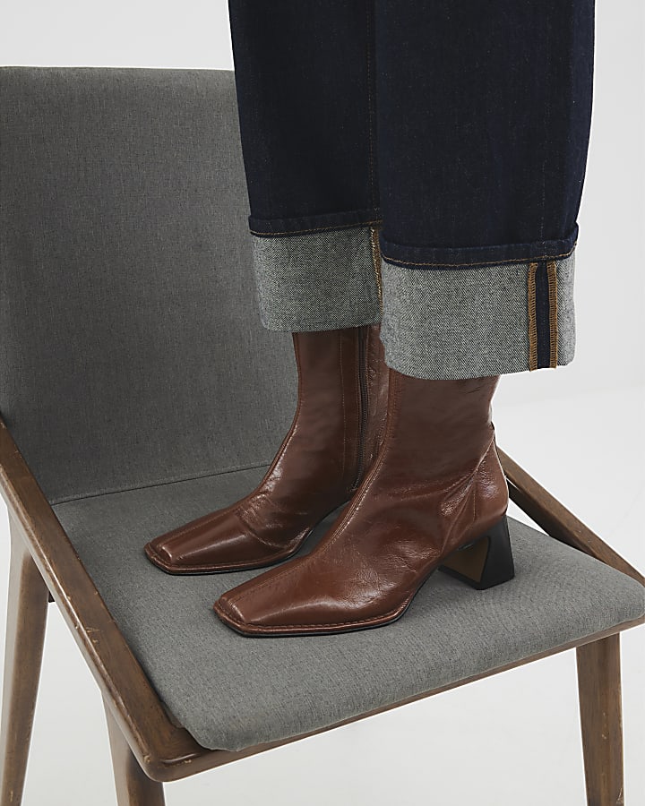 Shop our new Brown Leather Stitched Block Heeled Boots at River Island today. Order now for Free Click & Collect and Delivery (Ts&Cs apply).