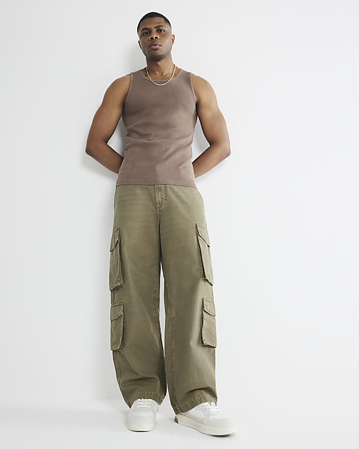 Shop our new Brown Muscle Fit Ribbed Washed Vest at River Island today. Order now for Free Click & Collect and Delivery (Ts&Cs apply).